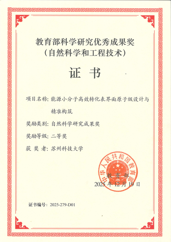 近日,教育部公布了2025年度科学研究优秀成果奖(自然科学和工程技术)的授奖名单,我校材料学院郭春显教授牵头完成的成果“能源小分子高效转化表界面原子级设计与精准构筑”荣获自然科学研究成果奖二等奖。获奖人包括杨鸿斌教授、马汝广教授、李长明教授等。