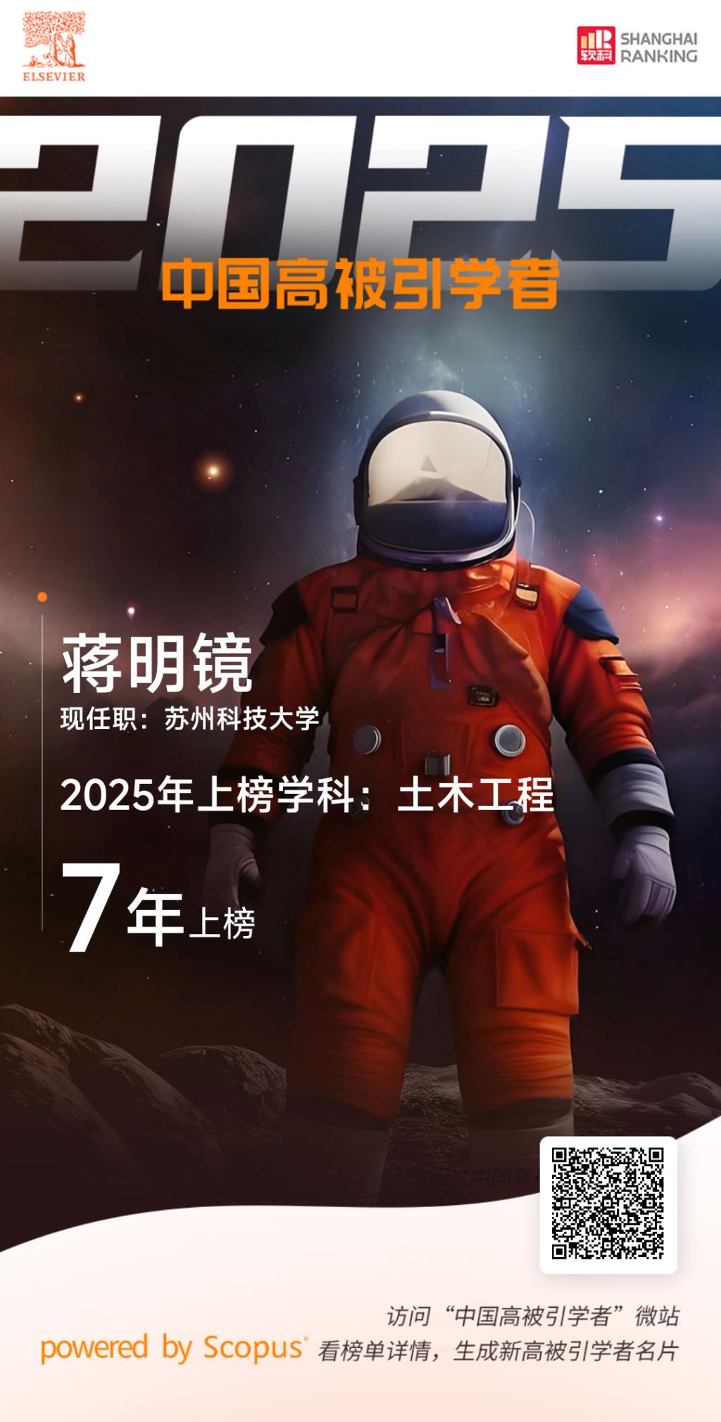 2026年1月30日,爱思唯尔(Elsevier)正式发布2025“中国高被引学者”(Highly Cited Chinese Researchers)榜单。我校李长明和蒋明镜两位教授入选。