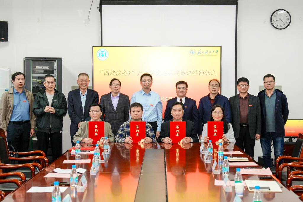 科技产业处及相关学院汇报了学校科技成果并与委员企业进行了交流,洽谈会现场进行了“高端装备+”产业链党建共建签约仪式和校企产学研合作签约仪式。科技产业处党支部与阜宁县政协机关党支部签订党建共建协议,科技产业处党支部、机械工程学院教工党支部、电子与信息工程学院产教融合先锋党支部与阜宁县阀门石油机械行业协会党支部联合签订党建共建协议。