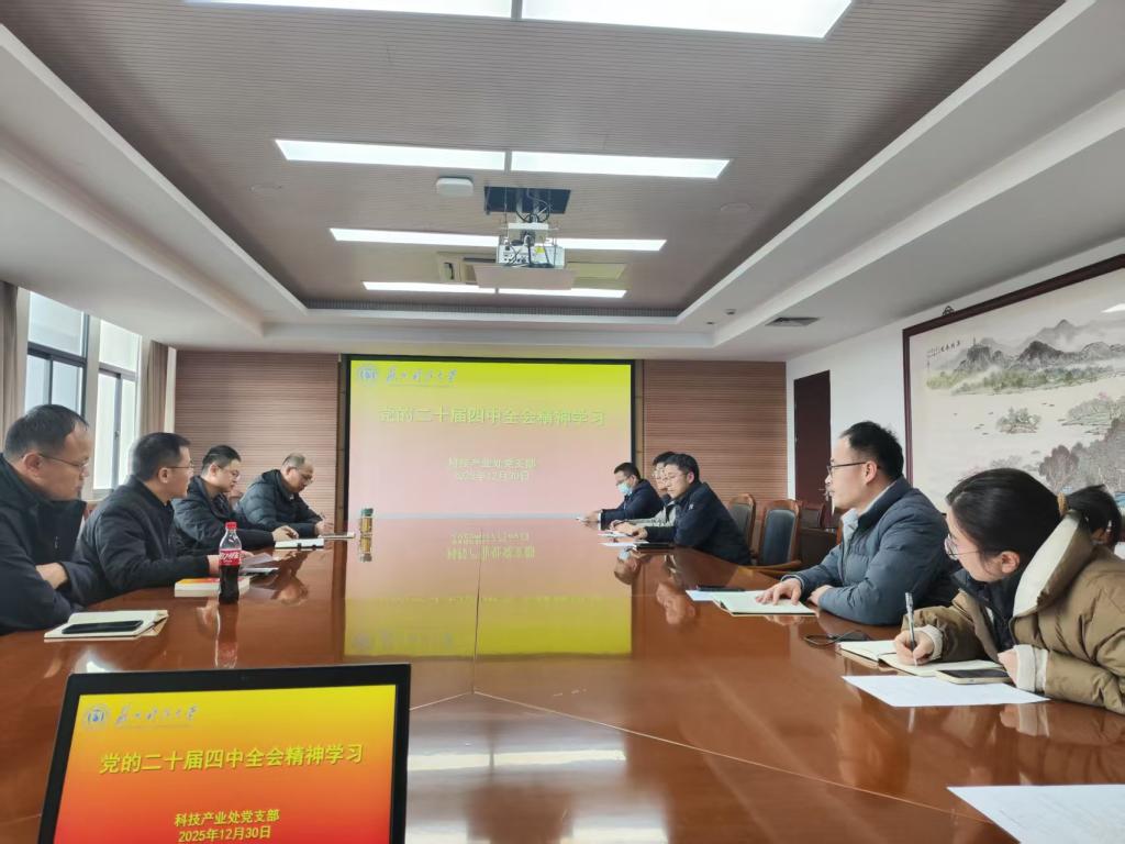 为深入学习宣传贯彻党的二十届四中全会精神,12月30日下午,科技产业处党支部在行政楼五二会议室召开专题学习会,支部书记、副处长李华一主持会议,支部全体党员参加了学习活动。